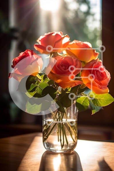 Υπάρχει δυνατότητα προσωποποίησης με δική σας φωτογραφία και προσαρμογής διαστάσεων κατόπιν παραγγελίας. Το συγεκεριμενο puzzle παρουσιαζει Αυτή η εικόνα είναι ένα βάζο με τρία πορτοκαλί τριαντάφυλλα που κάθεται σε ένα ξύλινο τραπέζι μπροστά από ένα παράθυρο, με το φως του ήλιου να περνάει μέσα. Οι ζεστοί τόνοι του ξύλου και τα έντονα χρώματα των λουλουδιών δημιουργούν μια όμορφη αντίθεση, ενώ ο φυσικός φωτισμός π