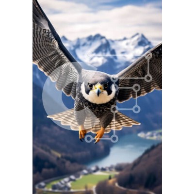Υπάρχει δυνατότητα προσωποποίησης με δική σας φωτογραφία και προσαρμογής διαστάσεων κατόπιν παραγγελίας. Το συγεκεριμενο puzzle παρουσιαζει Αυτή η εικόνα δείχνει ένα γεράκι σε πτήση, με τα φτερά του τεντωμένα, να πετάει πάνω από ένα ορεινό τοπίο που κόβει την ανάσα. Το γεράκι είναι ένα μεγάλο αρπακτικό πουλί με ασπρόμαυρα φτερά και κοφτερό ράμφος. Οι μαγευτικές χιονισμένες κορυφές και το ποτάμι που ρέει μέσα από τ