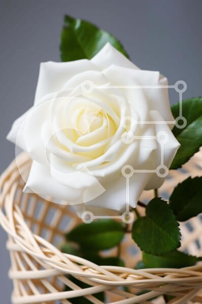 Υπάρχει δυνατότητα προσωποποίησης με δική σας φωτογραφία και προσαρμογής διαστάσεων κατόπιν παραγγελίας. Το συγεκεριμενο puzzle παρουσιαζει Αυτή η εικόνα παρουσιάζει ένα λευκό τριαντάφυλλο τοποθετημένο μέσα σε ένα άδειο ψάθινο καλάθι. Το τριαντάφυλλο είναι σε άριστη κατάσταση, χωρίς σημάδια φθοράς ή φθοράς. Γύρω από το τριαντάφυλλο υπάρχουν πολλά πλούσια φύλλα, που δείχνουν ότι έχει φροντιστεί καλά και ποτίστηκε π