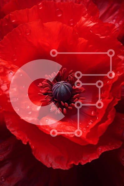 Υπάρχει δυνατότητα προσωποποίησης με δική σας φωτογραφία και προσαρμογής διαστάσεων κατόπιν παραγγελίας. Το συγεκεριμενο puzzle παρουσιαζει Αυτή η εικόνα παρουσιάζει μια κοντινή άποψη ενός ζωντανού κόκκινου λουλουδιού παπαρούνας, τονίζοντας τα λεπτά πέταλά του και τις περίπλοκες λεπτομέρειες στο κέντρο. Σταγονίδια νερού κοσμούν τα πέταλα, ενισχύοντας την υφή τους και γυαλίζουν στο φως. Το εντυπωσιακό χρώμα και η σ