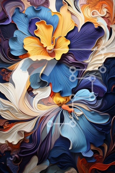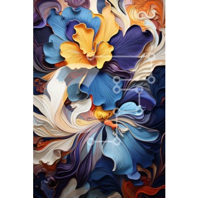 Υπάρχει δυνατότητα προσωποποίησης με δική σας φωτογραφία και προσαρμογής διαστάσεων κατόπιν παραγγελίας. Το συγεκεριμενο puzzle παρουσιαζει Αυτή η εικόνα είναι μια κοντινή λήψη ενός λουλουδιού με φωτεινά μπλε, κίτρινα και πορτοκαλί πέταλα. Τα πέταλα είναι κυρτά και κυματιστά, προσθέτοντας βάθος και υφή στην εικόνα. Το κέντρο του λουλουδιού είναι μια πιο σκούρα απόχρωση του πορτοκαλί, δημιουργώντας μια εντυπωσιακή