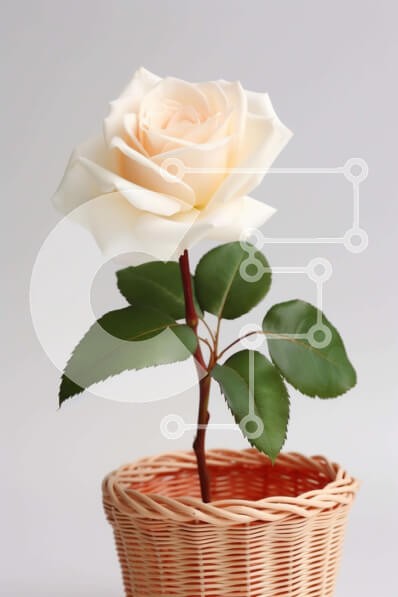 Υπάρχει δυνατότητα προσωποποίησης με δική σας φωτογραφία και προσαρμογής διαστάσεων κατόπιν παραγγελίας. Το συγεκεριμενο puzzle παρουσιαζει Αυτή η εικόνα δείχνει ένα μόνο λευκό τριαντάφυλλο που μεγαλώνει σε ένα πορτοκαλί ψάθινο καλάθι. Το τριαντάφυλλο φαίνεται υγιές και περιποιημένο και είναι το επίκεντρο της εικόνας. Η αντίθεση ανάμεσα στα λευκά πέταλα και το πορτοκαλί καλάθι δημιουργεί μια οπτικά ευχάριστη σύνθε