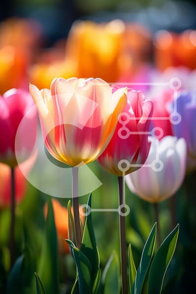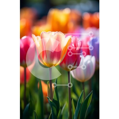 Υπάρχει δυνατότητα προσωποποίησης με δική σας φωτογραφία και προσαρμογής διαστάσεων κατόπιν παραγγελίας. Το συγεκεριμενο puzzle παρουσιαζει Αυτή η εικόνα παρουσιάζει μια ομάδα από πολύχρωμες τουλίπες σε έναν κήπο. Οι τουλίπες είναι σε πλήρη άνθηση, με τα πέταλά τους ανοιχτά και στραμμένα προς τα πάνω. Τα χρώματα των τουλίπες περιλαμβάνουν ροζ, κίτρινο και πορτοκαλί. Στέκονται ψηλά και ίσια, με τα στελέχη τους να φ