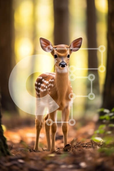 Υπάρχει δυνατότητα προσωποποίησης με δική σας φωτογραφία και προσαρμογής διαστάσεων κατόπιν παραγγελίας. Το συγεκεριμενο puzzle παρουσιαζει Αυτή η εικόνα είναι ενός νεαρού ελαφιού που στέκεται σε ένα ξέφωτο του δάσους που περιβάλλεται από ψηλά δέντρα και φτέρες. Το ελαφάκι έχει μεγάλα καστανά μάτια και λευκές κηλίδες στην καφέ γούνα του και φαίνεται σε εγρήγορση και περιέργεια. Το δάσος είναι καλυμμένο με πευκοβελ