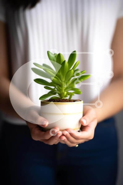 Υπάρχει δυνατότητα προσωποποίησης με δική σας φωτογραφία και προσαρμογής διαστάσεων κατόπιν παραγγελίας. Το συγεκεριμενο puzzle παρουσιαζει Η εικόνα απεικονίζει μια γυναίκα που κρατά ένα μικρό φυτό σε γλάστρα. Το φυτό φαίνεται υγιές και περιποιημένο, υποδηλώνοντας πρόσφατη προσοχή. Μπορεί επίσης να χρησιμεύσει ως καλλωπιστικό φυτό λόγω των πολλαπλών φύλλων του. Ένα μοναδικό puzzle που συνδυάζει ποιότητα, αισθητικ