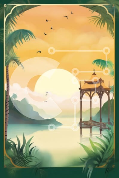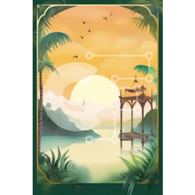 Υπάρχει δυνατότητα προσωποποίησης με δική σας φωτογραφία και προσαρμογής διαστάσεων κατόπιν παραγγελίας. Το συγεκεριμενο puzzle παρουσιαζει Η εικόνα απεικονίζει μια ειδυλλιακή σκηνή με κιόσκι, φοίνικες και πουλιά να πετούν πάνω από το νερό. Θα μπορούσε να χρησιμοποιηθεί για την απεικόνιση τροπικών τοπίων, καθώς και ρομαντικών αποδράσεων ή χαλαρωτικών διακοπών. Υπάρχουν αρκετά στοιχεία που συμβάλλουν στη συνολική ε