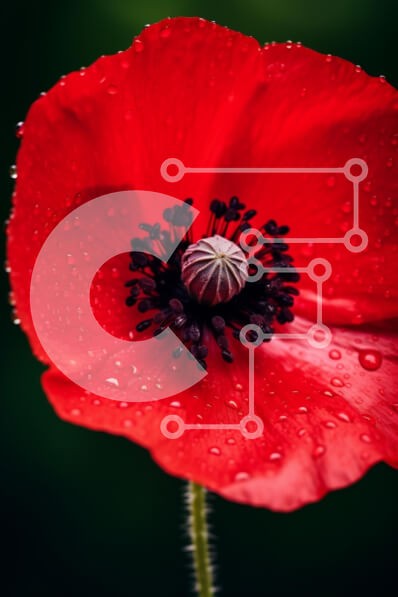 Υπάρχει δυνατότητα προσωποποίησης με δική σας φωτογραφία και προσαρμογής διαστάσεων κατόπιν παραγγελίας. Το συγεκεριμενο puzzle παρουσιαζει Η εικόνα δείχνει ένα ζωντανό κόκκινο λουλούδι παπαρούνας σε κοντινό πλάνο, καλυμμένο με σταγόνες νερού που αστράφτουν στο φως. Τα ευαίσθητα πέταλα είναι ένα πλούσιο κόκκινο, που έρχονται σε όμορφη αντίθεση με το σκούρο κέντρο γεμάτο με πολλούς στήμονες. Αυτή η σκηνή αποτυπώνει