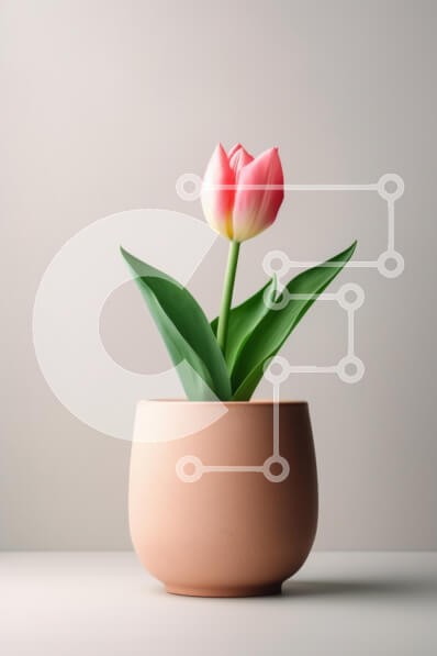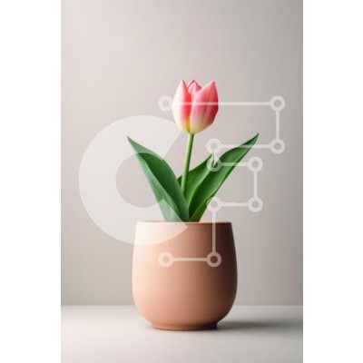 Υπάρχει δυνατότητα προσωποποίησης με δική σας φωτογραφία και προσαρμογής διαστάσεων κατόπιν παραγγελίας. Το συγεκεριμενο puzzle παρουσιαζει Αυτή η εικόνα παρουσιάζει μια ενιαία ροζ τουλίπα που ανθίζει με χάρη σε μια μινιμαλιστική γλάστρα από τερακότα. Η τουλίπα, με τα απαλά ροζ πέταλά της που μετατρέπονται σε λευκό στις άκρες, περιβάλλεται από πλούσια πράσινα φύλλα, όλα σε ουδέτερο φόντο. Η σύνθεση τονίζει την ομο