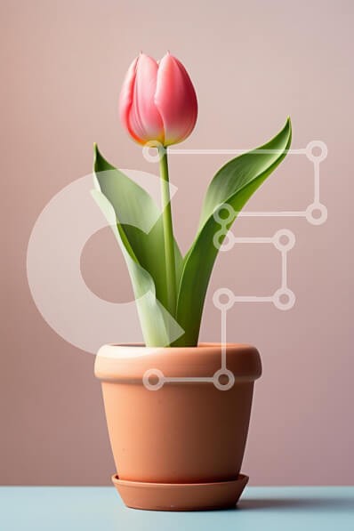 Υπάρχει δυνατότητα προσωποποίησης με δική σας φωτογραφία και προσαρμογής διαστάσεων κατόπιν παραγγελίας. Το συγεκεριμενο puzzle παρουσιαζει Αυτή η εικόνα παρουσιάζει μια όμορφη ροζ τουλίπα σε μια γλάστρα από τερακότα, που στέκεται ψηλά σε ένα απαλά χρωματισμένο φόντο. Η τουλίπα έχει λεία πέταλα που εμφανίζουν μια απαλή κλίση από το ροζ έως μια πιο ανοιχτή απόχρωση στις άκρες, ενώ τα πράσινα φύλλα της καμάρουν με χ