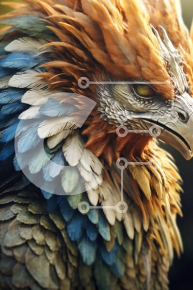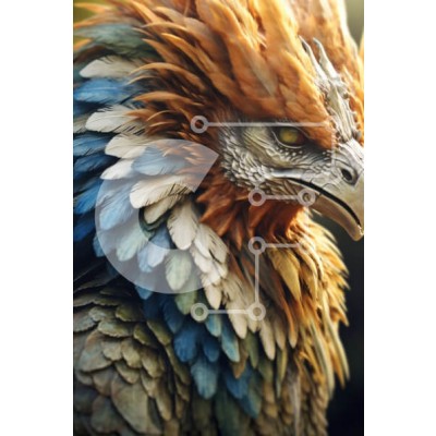 Υπάρχει δυνατότητα προσωποποίησης με δική σας φωτογραφία και προσαρμογής διαστάσεων κατόπιν παραγγελίας. Το συγεκεριμενο puzzle παρουσιαζει Αυτή η εικόνα απεικονίζει ένα μυθικό πλάσμα με έντονα χρωματιστά φτερά, μεγάλο ράμφος και μεγαλοπρεπή φτερά. Το πλάσμα φαίνεται δυνατό και δυνατό, με αιχμηρά νύχια που μπορούσαν εύκολα να πιάσουν το θήραμα. Τα χρώματα των φτερών είναι ζωηρά και εντυπωσιακά, με αποχρώσεις του μ