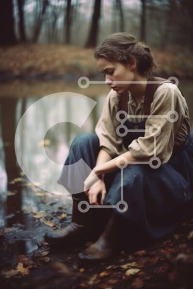 Υπάρχει δυνατότητα προσωποποίησης με δική σας φωτογραφία και προσαρμογής διαστάσεων κατόπιν παραγγελίας. Το συγεκεριμενο puzzle παρουσιαζει Αυτή η εικόνα παρουσιάζει μια νεαρή γυναίκα ντυμένη με καφέ φόρεμα και μπότες να κάθεται στην όχθη ενός ποταμού σε ένα δάσος. Η γυναίκα φαίνεται να είναι λυπημένη και κοιτάζει κάτω το νερό με μια συλλογισμένη έκφραση στο πρόσωπό της. Ένα μοναδικό puzzle που συνδυάζει ποιότητα