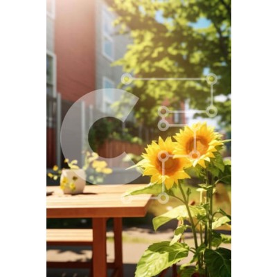 Υπάρχει δυνατότητα προσωποποίησης με δική σας φωτογραφία και προσαρμογής διαστάσεων κατόπιν παραγγελίας. Το συγεκεριμενο puzzle παρουσιαζει Η εικόνα δείχνει ένα ξύλινο τραπέζι με δύο ηλίανθους φυτεμένους στο κέντρο, που περιβάλλεται από φυτά σε γλάστρες. Ένα μικρό βάζο προσθέτει οπτικό ενδιαφέρον στη σκηνή. Ένα μοναδικό puzzle που συνδυάζει ποιότητα, αισθητική και εμπειρία. Υλικό: Κατασκευασμένο από ανθεκτικό κα