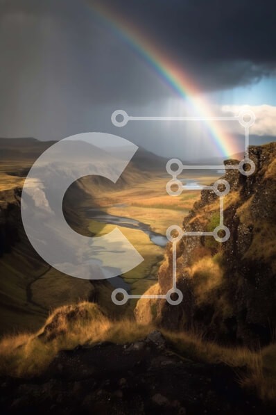 Υπάρχει δυνατότητα προσωποποίησης με δική σας φωτογραφία και προσαρμογής διαστάσεων κατόπιν παραγγελίας. Το συγεκεριμενο puzzle παρουσιαζει Αυτή η εικόνα αποτυπώνει την ομορφιά της φύσης, με ένα ουράνιο τόξο να εκτείνεται σε μια καταπράσινη κοιλάδα. Η κοιλάδα είναι διάσπαρτη με δέντρα και θάμνους, και ένα ποτάμι τη διασχίζει. Ο ουρανός είναι συννεφιασμένος με μαύρα σύννεφα, που ενισχύουν το δραματικό αποτέλεσμα. Α