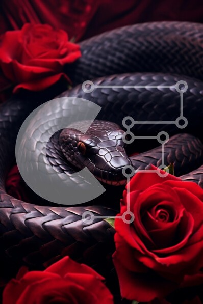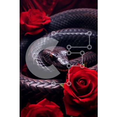 Υπάρχει δυνατότητα προσωποποίησης με δική σας φωτογραφία και προσαρμογής διαστάσεων κατόπιν παραγγελίας. Το συγεκεριμενο puzzle παρουσιαζει Η εικόνα παρουσιάζει ένα εντυπωσιακό μαύρο φίδι κουλουριασμένο με χάρη ανάμεσα σε ζωηρά κόκκινα τριαντάφυλλα. Τα λέπια του φιδιού αστράφτουν, αναδεικνύοντας περίπλοκα σχέδια και υφές, ενώ τα πλούσια πέταλα των τριαντάφυλλων παρέχουν μια έντονη αντίθεση με το πλούσιο χρώμα τους