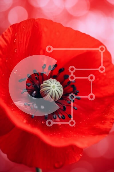 Υπάρχει δυνατότητα προσωποποίησης με δική σας φωτογραφία και προσαρμογής διαστάσεων κατόπιν παραγγελίας. Το συγεκεριμενο puzzle παρουσιαζει Αυτή η εικόνα παρουσιάζει ένα κοντινό πλάνο ενός ζωντανού κόκκινου λουλουδιού παπαρούνας. Τα πέταλα έχουν λεπτή υφή, με σταγόνες νερού να αστράφτουν στην επιφάνειά τους, προσθέτοντας τη φρεσκάδα του λουλουδιού. Το κέντρο του λουλουδιού εμφανίζει έναν ανοιχτόχρωμο λοβό σπόρων μ