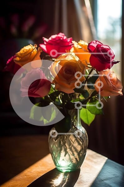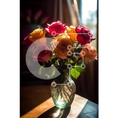 Υπάρχει δυνατότητα προσωποποίησης με δική σας φωτογραφία και προσαρμογής διαστάσεων κατόπιν παραγγελίας. Το συγεκεριμενο puzzle παρουσιαζει Αυτή η εικόνα παρουσιάζει ένα βάζο γεμάτο με πολύχρωμα τριαντάφυλλα που κάθεται σε ένα ξύλινο τραπέζι. Το φως του ήλιου λάμπει μέσα από το παράθυρο στο βάθος, δημιουργώντας μια όμορφη και ζεστή ατμόσφαιρα. Αυτή η εικόνα είναι ιδανική για να προσθέσετε μια πινελιά χρώματος και