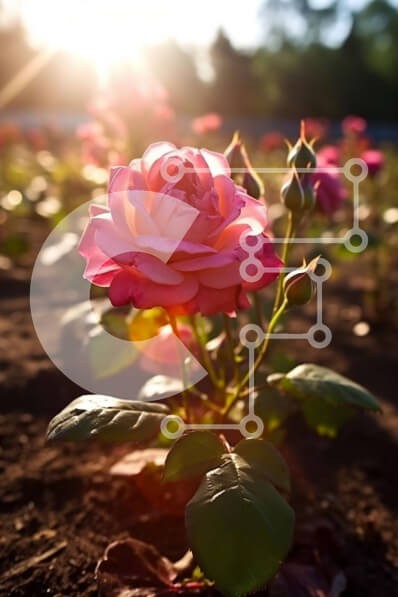 Υπάρχει δυνατότητα προσωποποίησης με δική σας φωτογραφία και προσαρμογής διαστάσεων κατόπιν παραγγελίας. Το συγεκεριμενο puzzle παρουσιαζει Αυτή η εικόνα απεικονίζει ένα κοντινό πλάνο ενός ροζ τριαντάφυλλου σε ένα χωράφι κατά τη διάρκεια του ηλιοβασιλέματος. Το τριαντάφυλλο είναι σε πλήρη άνθιση και το ζωηρό ροζ χρώμα του ξεχωρίζει στο πράσινο γρασίδι και τον πορτοκαλί ουρανό. Ο φωτισμός είναι ζεστός και απαλός, δ