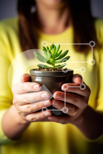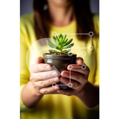 Υπάρχει δυνατότητα προσωποποίησης με δική σας φωτογραφία και προσαρμογής διαστάσεων κατόπιν παραγγελίας. Το συγεκεριμενο puzzle παρουσιαζει Η εικόνα δείχνει μια γυναίκα που κρατά ένα μικρό φυτό σε γλάστρα. Το φυτό φαίνεται υγιές και φροντισμένο, υποδηλώνοντας πρόσφατη μεταμόσχευση στο σπίτι της γυναίκας ή ως διακοσμητικό ή διακοσμητικό φυτό. Ένα μοναδικό puzzle που συνδυάζει ποιότητα, αισθητική και εμπειρία. Υλι