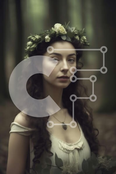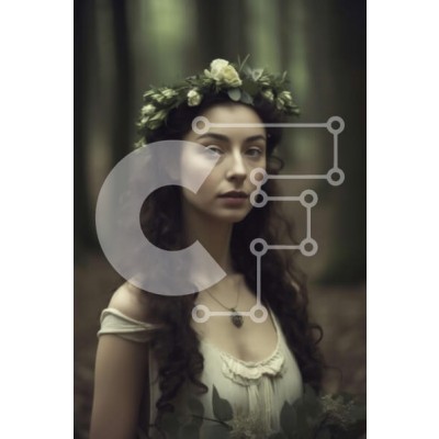 Υπάρχει δυνατότητα προσωποποίησης με δική σας φωτογραφία και προσαρμογής διαστάσεων κατόπιν παραγγελίας. Το συγεκεριμενο puzzle παρουσιαζει Αυτή η εικόνα απεικονίζει μια γυναίκα που φορά ένα στεφάνι από λουλούδια, που στέκεται σε ένα δάσος. Η γυναίκα βρίσκεται στο κέντρο της εικόνας και φοράει ένα απλό ντύσιμο που συμπληρώνει το φυσικό σκηνικό. Το φόντο του δάσους αποτελείται από διαφορετικές αποχρώσεις του πράσιν