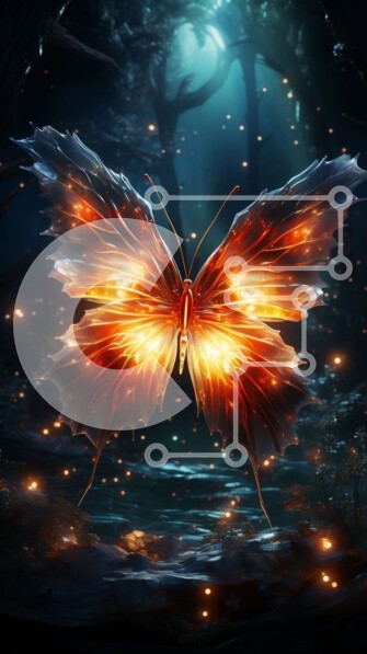 Υπάρχει δυνατότητα προσωποποίησης με δική σας φωτογραφία και προσαρμογής διαστάσεων κατόπιν παραγγελίας. Το συγεκεριμενο puzzle παρουσιαζει Αυτή η εικόνα παρουσιάζει μια όμορφη πορτοκαλί πεταλούδα με λαμπερά φτερά σκαρφαλωμένη σε ένα κλαδί δέντρου σε ένα σκοτεινό δάσος τη νύχτα. Τα φτερά της πεταλούδας είναι στολισμένα με περίπλοκα σχέδια που λαμπυρίζουν και λάμπουν, και πυγολαμπίδες την περιβάλλουν, φωτίζοντας τη