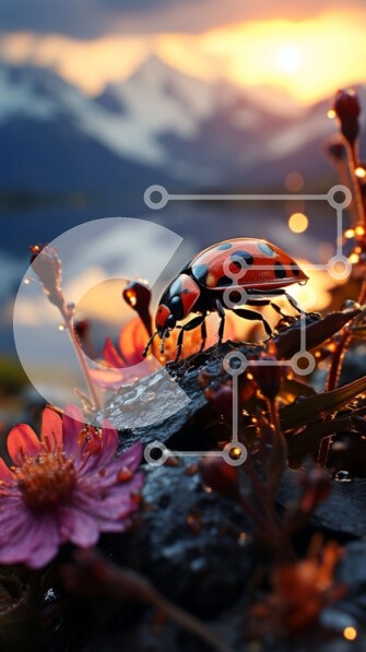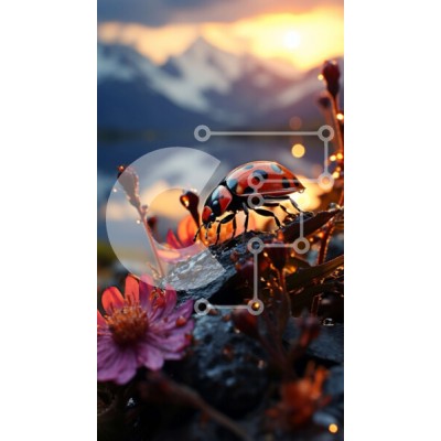 Υπάρχει δυνατότητα προσωποποίησης με δική σας φωτογραφία και προσαρμογής διαστάσεων κατόπιν παραγγελίας. Το συγεκεριμενο puzzle παρουσιαζει Αυτή η εικόνα παρουσιάζει μια κόκκινη και μαύρη πασχαλίτσα που κάθεται σε έναν βράχο δίπλα σε μια λίμνη κατά τη διάρκεια του ηλιοβασιλέματος. Το προσκήνιο είναι γεμάτο με ροζ λουλούδια, προσθέτοντας μια πινελιά χρώματος στη σκηνή. Είναι μια όμορφη αναπαράσταση της ηρεμίας της