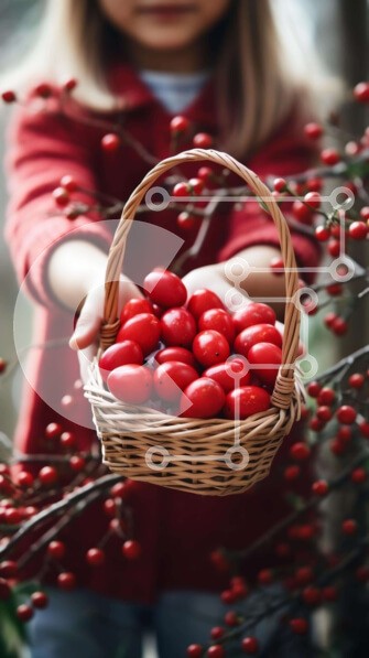 Υπάρχει δυνατότητα προσωποποίησης με δική σας φωτογραφία και προσαρμογής διαστάσεων κατόπιν παραγγελίας. Το συγεκεριμενο puzzle παρουσιαζει Αυτή η εικόνα δείχνει ένα νεαρό κορίτσι που κρατά ένα άδειο ψάθινο καλάθι με κόκκινα μούρα. Το καλάθι είναι τοποθετημένο σε ένα κλαδί δέντρου, υποδεικνύοντας ότι το κορίτσι μπορεί να μαζεύει τους καρπούς. Γύρω από το χέρι της κοπέλας υπάρχουν πολλά κλαδιά, που υποδηλώνουν ότι