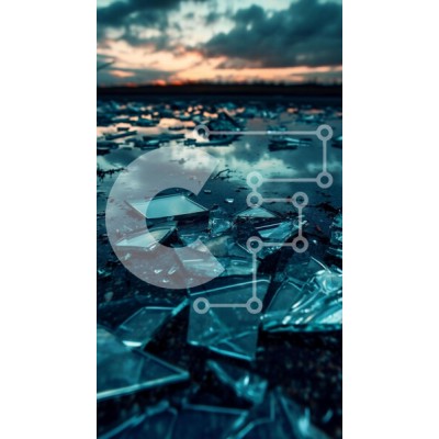 Υπάρχει δυνατότητα προσωποποίησης με δική σας φωτογραφία και προσαρμογής διαστάσεων κατόπιν παραγγελίας. Το συγεκεριμενο puzzle παρουσιαζει Η εικόνα παρουσιάζει μεγάλο αριθμό θραυσμάτων γυαλιού διάσπαρτα στο έδαφος. Αυτά τα κομμάτια φαίνεται να είναι σπασμένα σε μικρότερα κομμάτια, υποδηλώνοντας ότι μπορεί να έχουν πεταχτεί στο νερό από κάποιον ή κάτι. Υπάρχει επίσης μια εικόνα με σύννεφα στον ουρανό, που υποδηλών