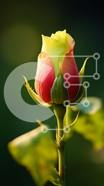 Υπάρχει δυνατότητα προσωποποίησης με δική σας φωτογραφία και προσαρμογής διαστάσεων κατόπιν παραγγελίας. Το συγεκεριμενο puzzle παρουσιαζει Η εικόνα παρουσιάζει ένα εκπληκτικό μπουμπούκι τριαντάφυλλου με ένα μοναδικό μείγμα κίτρινων και κόκκινων αποχρώσεων, που στέκεται με χάρη σε ένα θολό πράσινο φόντο. Τα πέταλα έχουν λεπτό σχήμα, με λεία υφή που αναδεικνύει τα ζωηρά χρώματά τους. Ο πράσινος μίσχος είναι στολισμ