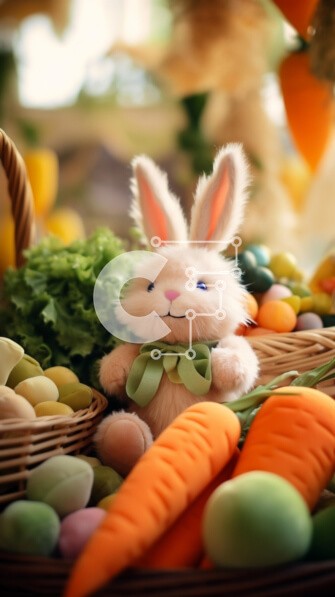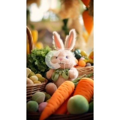 Υπάρχει δυνατότητα προσωποποίησης με δική σας φωτογραφία και προσαρμογής διαστάσεων κατόπιν παραγγελίας. Το συγεκεριμενο puzzle παρουσιαζει Αυτή η εικόνα παρουσιάζει ένα λευκό κουνελάκι που κάθεται δίπλα σε πολλά καλάθια με λαχανικά, όπως καρότα, πατάτες και μπρόκολο. Υπάρχουν επίσης διακοσμητικά με θέμα το Πάσχα στην εικόνα, όπως κουνελάκια με παπιγιόν και πασχαλινά αυγά. Επιπλέον, διάφορα είδη λουλουδιών και άλλ