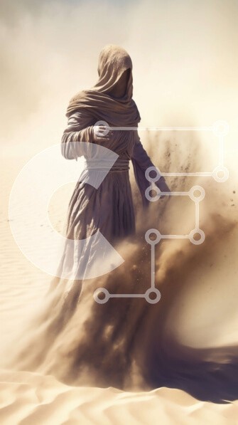 Υπάρχει δυνατότητα προσωποποίησης με δική σας φωτογραφία και προσαρμογής διαστάσεων κατόπιν παραγγελίας. Το συγεκεριμενο puzzle παρουσιαζει Αυτή είναι μια εικόνα ενός ατόμου που περπατά μέσα από ένα τοπίο της ερήμου. Το άτομο φοράει ρόμπα και κουκούλα και γύρω του φυσάει άμμος, δημιουργώντας μια ατμόσφαιρα μοναξιάς και περιπέτειας. Το αμμώδες έδαφος απλώνεται στο βάθος, αποτυπώνοντας την τραχιά ομορφιά της ερήμου.