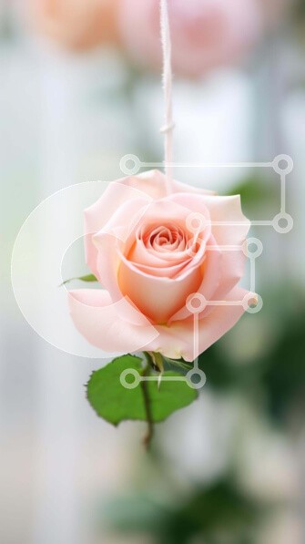 Υπάρχει δυνατότητα προσωποποίησης με δική σας φωτογραφία και προσαρμογής διαστάσεων κατόπιν παραγγελίας. Το συγεκεριμενο puzzle παρουσιαζει Αυτή η εικόνα παρουσιάζει ένα μόνο ροζ τριαντάφυλλο που κρέμεται από την οροφή, με πράσινα φύλλα να το περιβάλλουν. Το τριαντάφυλλο φαίνεται να αιωρείται στον αέρα και μπορεί να έχει τοποθετηθεί εκεί για διακοσμητικούς σκοπούς. Δεν υπάρχει καμία ένδειξη από πού προήλθε το τρια