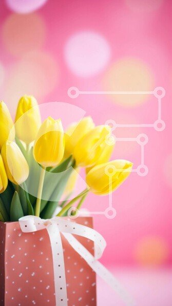 Υπάρχει δυνατότητα προσωποποίησης με δική σας φωτογραφία και προσαρμογής διαστάσεων κατόπιν παραγγελίας. Το συγεκεριμενο puzzle παρουσιαζει Αυτή η εικόνα παρουσιάζει ένα όμορφο μπουκέτο από κίτρινες τουλίπες τοποθετημένες σε ένα πορτοκαλί κουτί με κορδέλες με πουά. Τα λουλούδια είναι ζωντανά και φρέσκα, δημιουργώντας μια απολαυστική οπτική εμφάνιση. Το φόντο προσθέτει ένα αναδυόμενο χρώμα, ενισχύοντας τη συνολική