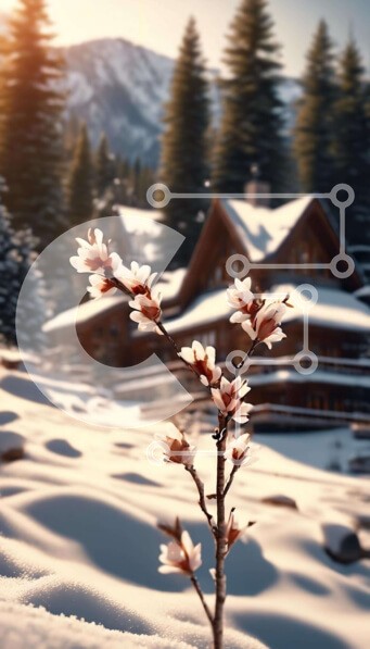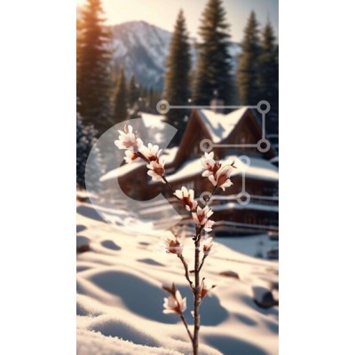 Υπάρχει δυνατότητα προσωποποίησης με δική σας φωτογραφία και προσαρμογής διαστάσεων κατόπιν παραγγελίας. Το συγεκεριμενο puzzle παρουσιαζει Η εικόνα απεικονίζει ένα χιονισμένο τοπίο με δέντρα, θάμνους και λουλούδια στο φόντο. Ένα μικρό κλαδί λευκών λουλουδιών φαίνεται να αναπτύσσεται από το χιόνι, υποδηλώνοντας ότι ανθίζει αυτή την εποχή του χρόνου. Επιπλέον, υπάρχουν πολλά σπίτια ή καμπίνες που βρίσκονται γύρω απ
