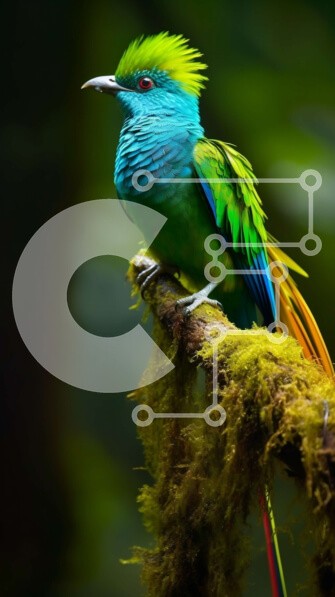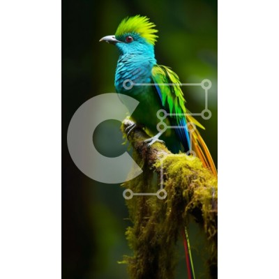 Υπάρχει δυνατότητα προσωποποίησης με δική σας φωτογραφία και προσαρμογής διαστάσεων κατόπιν παραγγελίας. Το συγεκεριμενο puzzle παρουσιαζει Αυτή η εικόνα παρουσιάζει ένα πολύχρωμο πουλί με πράσινα, μπλε και κίτρινα φτερά σκαρφαλωμένο σε ένα κλαδί με βρύα σε ένα καταπράσινο δάσος. Το πουλί έχει ένα μακρύ, κυρτό ράμφος και φωτεινά, λαμπερά φτερά που ξεχωρίζουν στο πράσινο φύλλωμα. Το φόντο διαθέτει ένα μείγμα από πλ