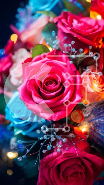 Υπάρχει δυνατότητα προσωποποίησης με δική σας φωτογραφία και προσαρμογής διαστάσεων κατόπιν παραγγελίας. Το συγεκεριμενο puzzle παρουσιαζει Η εικόνα παρουσιάζει ένα μπουκέτο από έντονα χρωματιστά τριαντάφυλλα σε διάφορες αποχρώσεις του ροζ, του μπλε και του μωβ. Υπάρχουν επίσης πολλά μικρά λουλούδια διάσπαρτα σε όλη τη διάταξη, τα οποία θα μπορούσαν να χρησιμοποιηθούν για τη δημιουργία βάζας ή κεντρικών κομματιών.