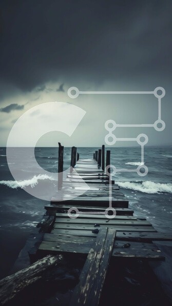 Υπάρχει δυνατότητα προσωποποίησης με δική σας φωτογραφία και προσαρμογής διαστάσεων κατόπιν παραγγελίας. Το συγεκεριμενο puzzle παρουσιαζει Η εικόνα παρουσιάζει μια ξύλινη προβλήτα που εκτείνεται στον ωκεανό, με θυελλώδη σύννεφα και κύματα να την περιβάλλουν. Πολλά κομμάτια παρασυρόμενου ξύλου είναι ορατά στην ακτή, προσθέτοντας στη δραματική σκηνή. Ένα μοναδικό puzzle που συνδυάζει ποιότητα, αισθητική και εμπειρ
