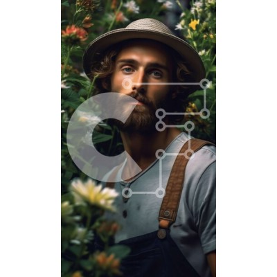 Υπάρχει δυνατότητα προσωποποίησης με δική σας φωτογραφία και προσαρμογής διαστάσεων κατόπιν παραγγελίας. Το συγεκεριμενο puzzle παρουσιαζει Αυτή η εικόνα δείχνει έναν άνδρα που φοράει φόρμες και ένα ψάθινο καπέλο να στέκεται ανάμεσα σε ένα χωράφι με αγριολούλουδα. Έχει μακριά μαλλιά και πυκνά γένια και κοιτάζει μακριά. Τα ζωηρά χρώματα των λουλουδιών δημιουργούν μια όμορφη αντίθεση με το γαλάζιο του ουρανού στο βά