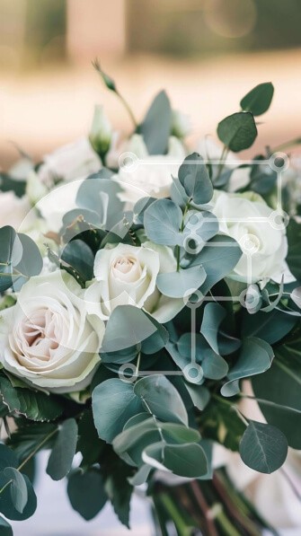 Υπάρχει δυνατότητα προσωποποίησης με δική σας φωτογραφία και προσαρμογής διαστάσεων κατόπιν παραγγελίας. Το συγεκεριμενο puzzle παρουσιαζει Η εικόνα παρουσιάζει ένα μπουκέτο με λευκά τριαντάφυλλα και πράσινα φύλλα, τοποθετημένα σε ένα τραπέζι εξωτερικού χώρου. Το μπουκέτο αποτελείται από πολλούς διαφορετικούς τύπους λουλουδιών, συμπεριλαμβανομένων λευκών λουλουδιών που μοιάζουν με μαργαρίτα που φαίνεται να έχουν σ