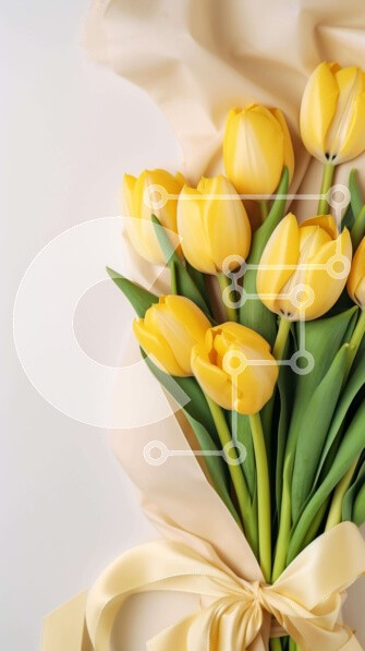 Υπάρχει δυνατότητα προσωποποίησης με δική σας φωτογραφία και προσαρμογής διαστάσεων κατόπιν παραγγελίας. Το συγεκεριμενο puzzle παρουσιαζει Αυτή η εικόνα δείχνει ένα μπουκέτο με κίτρινες τουλίπες τυλιγμένες σε λευκό χαρτί και δεμένες με μια πορτοκαλί κορδέλα. Το μπουκέτο τοποθετείται πάνω σε λευκό φόντο, καθιστώντας το ιδανικό για σκοπούς διακόσμησης ή δώρου. Οι φρέσκες και ζωντανές τουλίπες είναι έτοιμες να φέρου