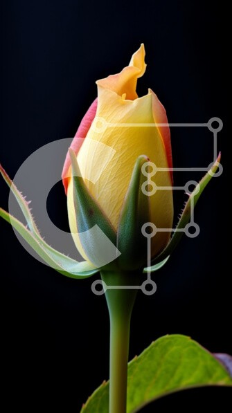 Υπάρχει δυνατότητα προσωποποίησης με δική σας φωτογραφία και προσαρμογής διαστάσεων κατόπιν παραγγελίας. Το συγεκεριμενο puzzle παρουσιαζει Αυτή η εικόνα παρουσιάζει ένα μόνο κίτρινο μπουμπούκι τριαντάφυλλου με μια νότα κόκκινου στις άκρες, σε σκούρο φόντο. Το μπουμπούκι του τριαντάφυλλου έχει κομψό σχήμα, αναδεικνύοντας τα λεία του πέταλα και το πράσινο σέπαλο. Η αλληλεπίδραση του φωτός δημιουργεί μια απαλή λάμψη