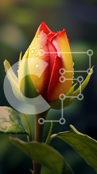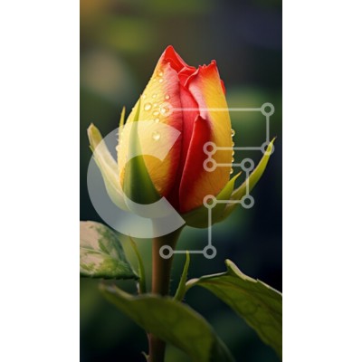 Υπάρχει δυνατότητα προσωποποίησης με δική σας φωτογραφία και προσαρμογής διαστάσεων κατόπιν παραγγελίας. Το συγεκεριμενο puzzle παρουσιαζει Αυτή η εικόνα παρουσιάζει ένα εκπληκτικό μπουμπούκι τριαντάφυλλου με ζωηρά κόκκινα και κίτρινα πέταλα, που αστράφτουν με σταγονίδια νερού. Ο οφθαλμός περιβάλλεται από πράσινα φύλλα, σε ένα απαλά θολό φυσικό φόντο. Η περίπλοκη υφή των πετάλων και η λεπτή διάταξη των φύλλων τονί