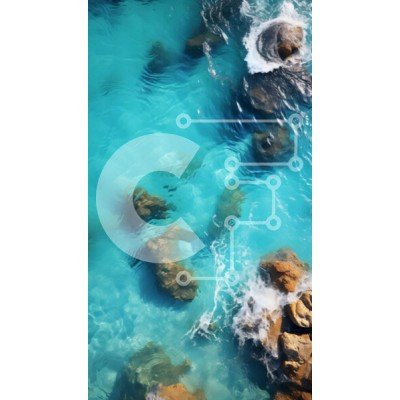 Υπάρχει δυνατότητα προσωποποίησης με δική σας φωτογραφία και προσαρμογής διαστάσεων κατόπιν παραγγελίας. Το συγεκεριμενο puzzle παρουσιαζει Αυτή η εικόνα δείχνει έναν καταγάλανο ωκεανό με βράχους σε πρώτο πλάνο. Το ήρεμο νερό αντανακλά τον γαλάζιο ουρανό από πάνω, δημιουργώντας ένα ήρεμο σκηνικό. Οι βράχοι είναι οδοντωτοί και βγαίνουν από το νερό, προσθέτοντας υφή στην εικόνα. Δεν υπάρχουν βάρκες ή άλλα αντικείμεν