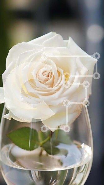 Υπάρχει δυνατότητα προσωποποίησης με δική σας φωτογραφία και προσαρμογής διαστάσεων κατόπιν παραγγελίας. Το συγεκεριμενο puzzle παρουσιαζει Αυτή η εικόνα παρουσιάζει ένα μονό λευκό τριαντάφυλλο σε ένα γυάλινο βάζο τοποθετημένο σε νερό. Το τριαντάφυλλο φαίνεται να είναι υγιές και καλά συντηρημένο, προσθέτοντας μια κομψή πινελιά στη σκηνή. Ένα μοναδικό puzzle που συνδυάζει ποιότητα, αισθητική και εμπειρία. Υλικό: