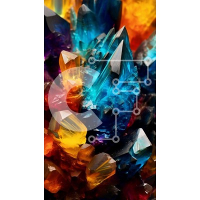 Υπάρχει δυνατότητα προσωποποίησης με δική σας φωτογραφία και προσαρμογής διαστάσεων κατόπιν παραγγελίας. Το συγεκεριμενο puzzle παρουσιαζει Αυτή η εικόνα είναι ένα κοντινό πλάνο ενός πολύχρωμου κρυστάλλινου σχηματισμού. Οι κρύσταλλοι έχουν έντονο χρώμα και φαίνονται να λάμπουν. Είναι διατεταγμένα σε ένα φαινομενικά τυχαίο σχέδιο και έχουν διάφορα σχήματα και μεγέθη. Το φόντο δεν είναι ορατό, γεγονός που επιτρέπει