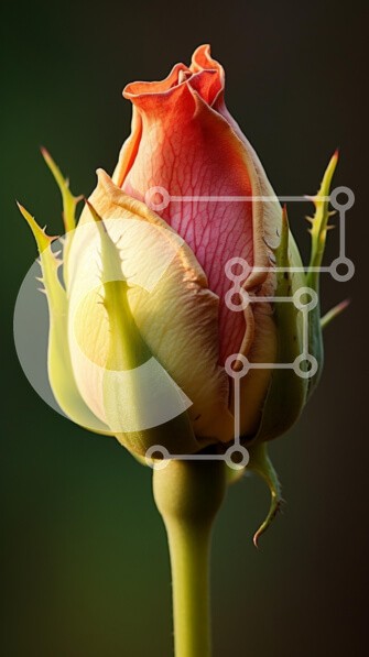 Υπάρχει δυνατότητα προσωποποίησης με δική σας φωτογραφία και προσαρμογής διαστάσεων κατόπιν παραγγελίας. Το συγεκεριμενο puzzle παρουσιαζει Αυτή η εικόνα παρουσιάζει ένα όμορφα μπουμπούκια τριαντάφυλλο, που παρουσιάζει λεπτά πέταλα σε αποχρώσεις του ροζ και του κρεμ. Το τριαντάφυλλο περιβάλλεται από πράσινα φύλλα και αγκαθωτούς μίσχους, δημιουργώντας μια εντυπωσιακή αντίθεση σε ένα απαλά θολό σκούρο φόντο. Οι περί