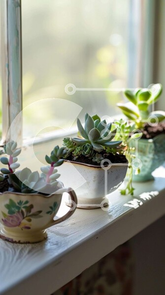 Υπάρχει δυνατότητα προσωποποίησης με δική σας φωτογραφία και προσαρμογής διαστάσεων κατόπιν παραγγελίας. Το συγεκεριμενο puzzle παρουσιαζει Η εικόνα απεικονίζει ένα περβάζι παραθύρου με πολλά χυμώδη φυτά σε γλάστρες σε κεραμικά κύπελλα. Υπάρχουν τέσσερις από αυτές τις ζαρντινιέρες τοποθετημένες στο περβάζι και υπάρχουν επίσης δύο μικρές γλάστρες που κάθονται δίπλα τους. Όλα τα φυτά φαίνεται να είναι υγιή και καλά