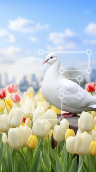 Υπάρχει δυνατότητα προσωποποίησης με δική σας φωτογραφία και προσαρμογής διαστάσεων κατόπιν παραγγελίας. Το συγεκεριμενο puzzle παρουσιαζει Αυτή η εικόνα παρουσιάζει ένα λευκό περιστέρι σκαρφαλωμένο με χάρη σε έναν ξύλινο στύλο, που περιβάλλεται από ζωηρές τουλίπες σε διάφορα χρώματα. Το φόντο δείχνει έναν όμορφο γαλάζιο ουρανό με απαλά σύννεφα, παρέχοντας μια ειδυλλιακή ατμόσφαιρα. Το σκηνικό τοποθετείται σε έναν