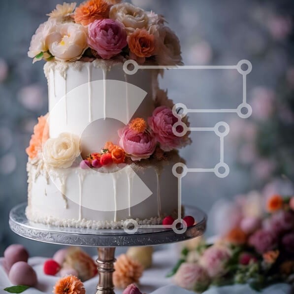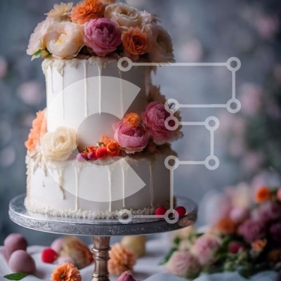 Υπάρχει δυνατότητα προσωποποίησης με δική σας φωτογραφία και προσαρμογής διαστάσεων κατόπιν παραγγελίας. Το συγεκεριμενο puzzle παρουσιαζει Η εικόνα παρουσιάζει μια όμορφα διακοσμημένη τούρτα τριών επιπέδων στολισμένη με λευκά και ροζ λουλούδια. Τοποθετημένο σε ένα διακοσμητικό ασημένιο πιάτο, το κέικ περιβάλλεται από cupcakes, φρούτα και μια ποικιλία από λουλούδια, όπως τριαντάφυλλα, γαρίφαλα και μαργαρίτες. Η σκ