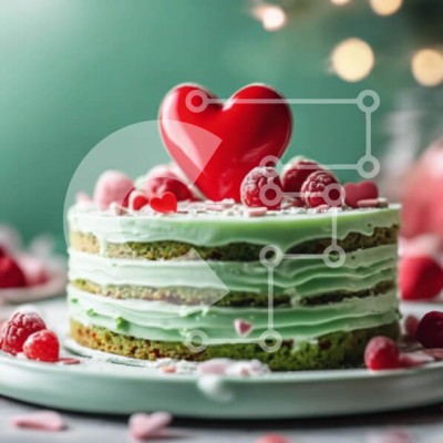 Υπάρχει δυνατότητα προσωποποίησης με δική σας φωτογραφία και προσαρμογής διαστάσεων κατόπιν παραγγελίας. Το συγεκεριμενο puzzle παρουσιαζει Αυτή η εικόνα παρουσιάζει ένα κέικ σε σχήμα καρδιάς, διακοσμημένο με σμέουρα και πράσινο γλάσο. Τοποθετείται πάνω από δύο πιάτα, τα οποία μπορούν να χρησιμοποιηθούν για προβολή ή σερβίρισμα. Διάφορα κομμάτια φρούτων υπάρχουν επίσης γύρω από το πιάτο, υποδηλώνοντας ότι το κέικ