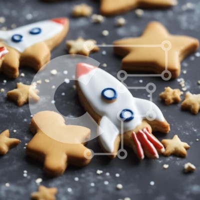 Υπάρχει δυνατότητα προσωποποίησης με δική σας φωτογραφία και προσαρμογής διαστάσεων κατόπιν παραγγελίας. Το συγεκεριμενο puzzle παρουσιαζει Αυτή η εικόνα παρουσιάζει μια ομάδα από μπισκότα διακοσμημένα με αστέρια, ρουκέτες και άλλες διακοσμήσεις με θέμα το διάστημα. Μερικά από τα μπισκότα στοιβάζονται το ένα πάνω στο άλλο, ενώ άλλα απλώνονται στην επιφάνεια εργασίας. Επιπλέον, υπάρχουν μελόψωμο σε διάφορα σχήματα